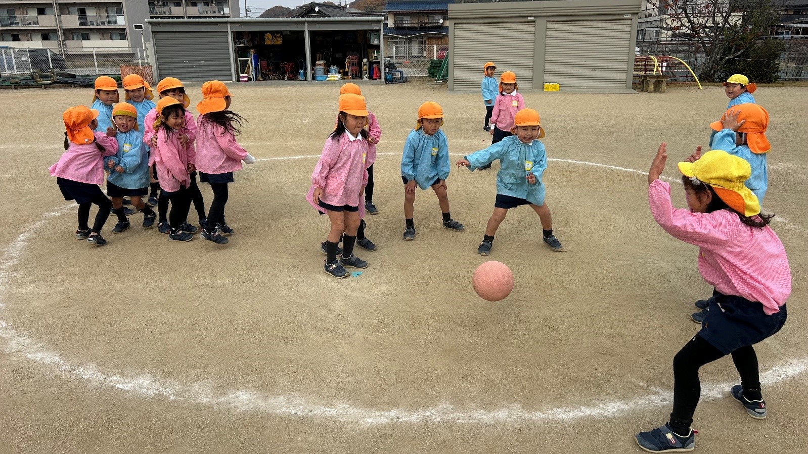 TOP > 転がしドッジボール(たんぽぽ組) アーカイブ : 2025年 12月 転がしドッジボール(たんぽぽ組) 運動会でご褒美にもらったボールを使って、10月からボールをついたり遠くへ投げたりいろいろなボール遊びを楽しんできました。12月から転がしドッジボールをして遊ぶようになりました。逃げる子ども達はボールの動きを目で見ながらタイミングよく逃げることを楽しんでいます。鬼の子ども達は逃げる子の動きを見て力いっぱいボールを転がして、当てることを楽しめるようになりました。 2025.12.17 ブログ 1 / 11